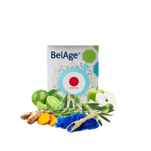 Belage VI es extraído de la fermentación de la hoja del olivo, romero, cúrcuma ( cultivados de manera especial con un estricto control de calidad), y  la espirulina azul (extraida de las profundidades del mar de Okinawa). Belage es el  resultado de la exclusiva e innovadora tecnología japonesa de Sanki, con 3 PATENTES: Orisod Enzyme V, una versión avanzada que aumenta la actividad de las enzimas antioxidantes SOD,GPx y Catalazas mejorando la capacidad antioxidante del cuerpo. La Hyprolina, un compuesto obtenido de la espirulina azul de Okinawa que mejora la captación de glucosa y protege el hígado contra la fibrosis. La tecnología ADS (Advanced Delivery System) que asegura un tiempo controlado de liberación de ingredientes, con base en la liberación controlada en sitios específicos del cuerpo evitando la destrucción en el estómago, a través de un recubrimiento especial, lo que permite una total eficiencia en los resultados.